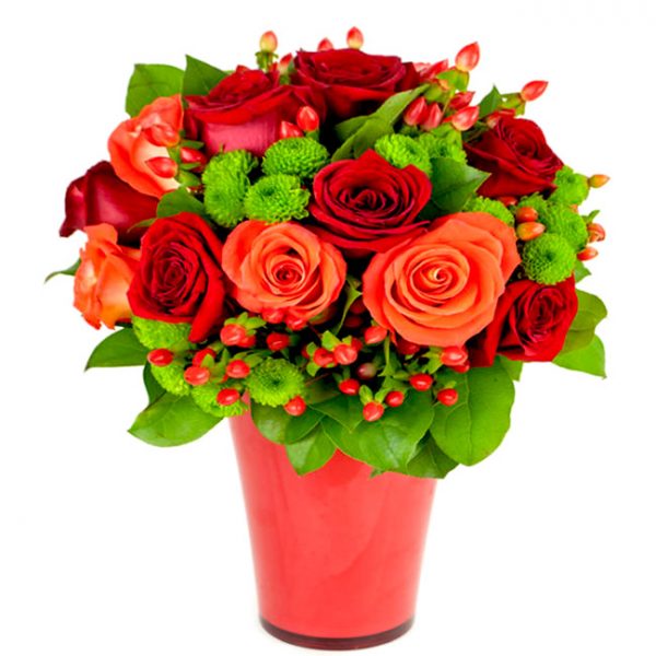 ₪ 125.00 – ₪ 215.00זר פרחים מעוצב בסגנון מודרני בגוונים כתום,אדום וירוק, משלב פרחי כרטמוס, ורדים, חרצית, ואלמנטים ירוקים, מגיע עם קישוט ואריזת יוטה.… -